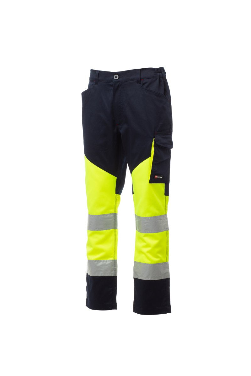 Pantalon unisexe, multi-saison, bicolore, haute visibilité, bandes rétroréfléchissantes, élastiques latéraux et passants à la taille....