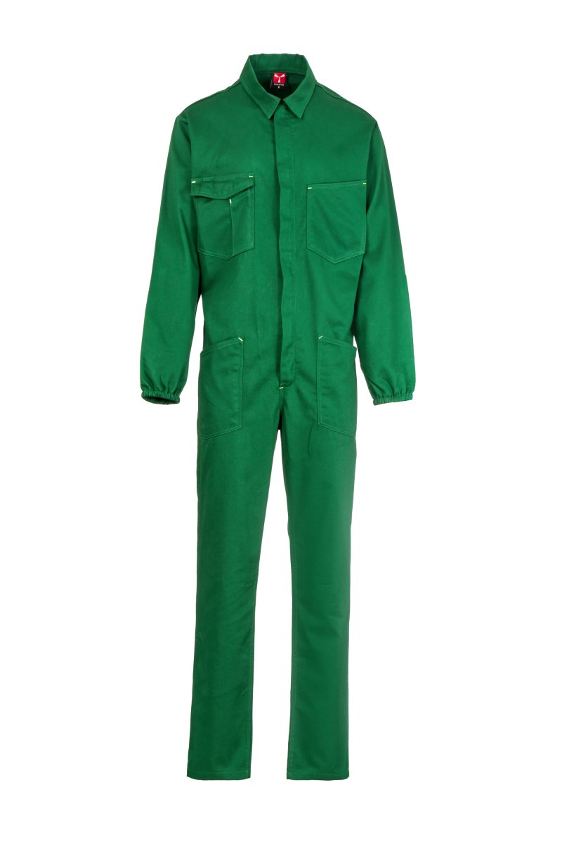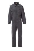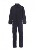 Combinaison à fermeture éclair centrale à double curseur couverte, poignets et taille arrière avec élastique. Deux poches plaquées, deux poches sur la poitrine dont une pour smartphone, porte-badge, porte-stylo et rabat de fermeture autoagrippant, poche porte-mètre. Coutures entrejambe et intérieur jambe à double aiguille.