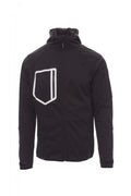 WP 8000 mm H₂O, WVT 5000 g/m² 24h. Soft-shell 3 couches, pour homme, manches raglan, fermeture par zip SBS avec ruban. Capuche profilée à deux coutures et coulisse réglable avec stoppeur. Poignets réglables avec serre-poignets caoutchoutés et fermeture autoagrippante. Fin liseré aux poignets et à la taille. Deux poches latérales avec zip, une poche poitrine thermosoudée et une poche sur le bras gauche avec zip apparent.