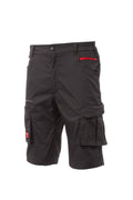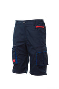 Bermuda unisexe, stretch, avec élastiques latéraux et passants à la taille, fermeture à zip et bouton personnalisé. Doté sur le devant de deux poches profilées, une petite poche porte-monnaie à droite, une petite poche de sécurité fermée par zip à gauche. L'avant de la jambe gauche comporte une poche à soufflet, avec rabat à fermeture autoagrippante et porte-badge. L'avant de la jambe droite comporte : une petite poche pour smartphone avec passepoil rétroréfléchissant et une poche à soufflet. L'arrière comporte : une poche avec rabat et fermeture autoagrippante, une poche porte-mètre (jambe droite) ; une poche ouverte avec deux bandes rétroréfléchissantes (jambe gauche). Coutures à trois aiguilles sur l'entrejambe, l'intérieur et l'extérieur jambe. Baguettes de renfort en contraste à différents endroits. Les tailles (italiennes) centrales 48-50-52 ont un intérieur jambe de 31 cm.