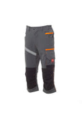 Pantalon corsaire (3/4), unisexe, tissu « 4 way stretch », avec élastiques latéraux et passants à la taille, fermeture à zip et bouton personnalisé. Doté sur le devant de deux poches arrondies, une petite poche porte-monnaie à droite, une petite poche de sécurité fermée par zip à gauche. L'avant de la jambe gauche comporte 3 poches : une poche horizontale fermée par zip, une poche à rabat profilé avec fermeture autoagrippante et dotée d'un porte-badge, une petite poche verticale fermée par zip. L'avant de la jambe droite présente une bande rétroréfléchissante. Les deux jambes sont dotées de porte-genouillères, en nylon Oxford 500D, à ouverture par le haut. L'arrière comporte : une poche à rabat avec fermeture autoagrippante, un anneau porte-marteau, une poche ouverte porte-mètre et une poche pour smartphone avec rabat et fermeture autoagrippante (jambe droite) ; une poche ouverte avec deux bandes rétroréfléchissantes (jambe gauche) ; des inserts rétroréfléchissants au niveau du genou pour les deux jambes. Surpiqûres latérales et baguettes de renfort en contraste à différents endroits. Les tailles (italiennes) centrales 48-50-52 ont un intérieur jambe de 51 cm.