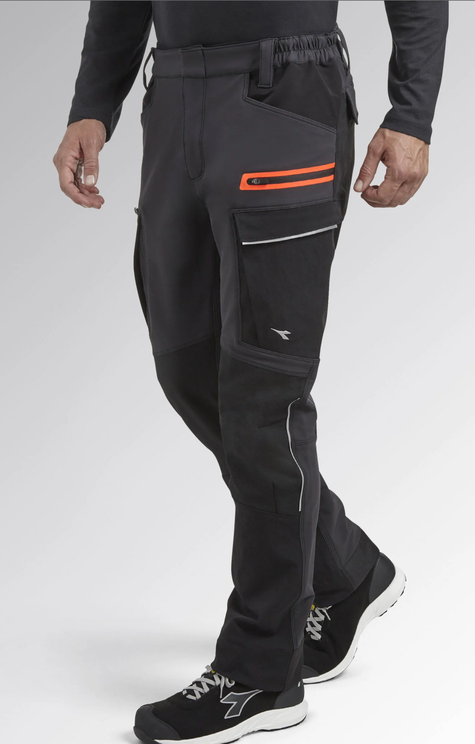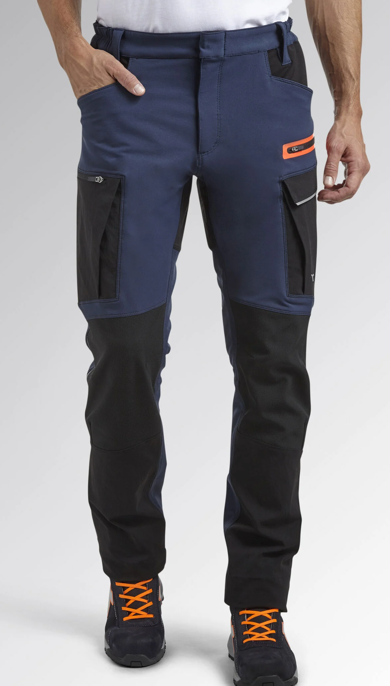 Pantalon cargo multimatière élastique. Ceinture profilée avec élastique sur les côtés pour plus de confort. Deux amples poches cargo avec fermeture zippée et Velcro®. Fermeture zippée thermosoudée fluo contrastante. Inserts en tissu anti-abrasion. Détails réfléchissants. Longueur ajustable grâce à des boutons-pression.