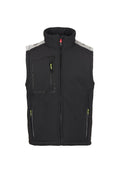 Gilet soft-shell homme 3 couches haute performance avec rembourrage chaud (160 g/m²), imperméabilité WP 8000 mm H₂O et respirabilité WVT 5000 g/m²/24h. Col avec inserts en polaire et intérieur doté de détails latéraux en fibre polaire. Fermeture par zip SBS avec curseur en métal à verrouillage semi-automatique et tirette personnalisée. Bandes rétroréfléchissantes sur les épaules et au bas du dos. Poche poitrine thermosoudée avec zip enduit, deux poches latérales fermées par zip avec détail rétroréfléchissant. Tirettes fluorescentes. Deux poches intérieures : une profilée avec zip (poitrine droite) et une poche porte-tablette avec fermeture autoagrippante (côté gauche). Bas réglable avec stoppeurs personnalisés.